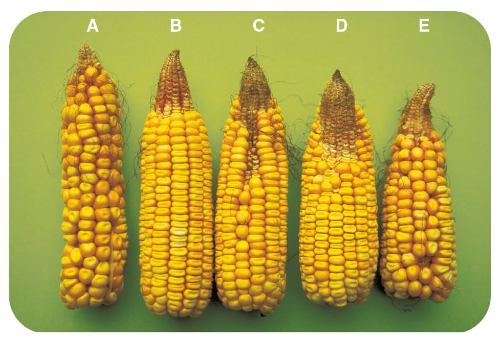 В зависимости от стадии развития кукурузы явно выраженный водный стресс становится заметным на початках.