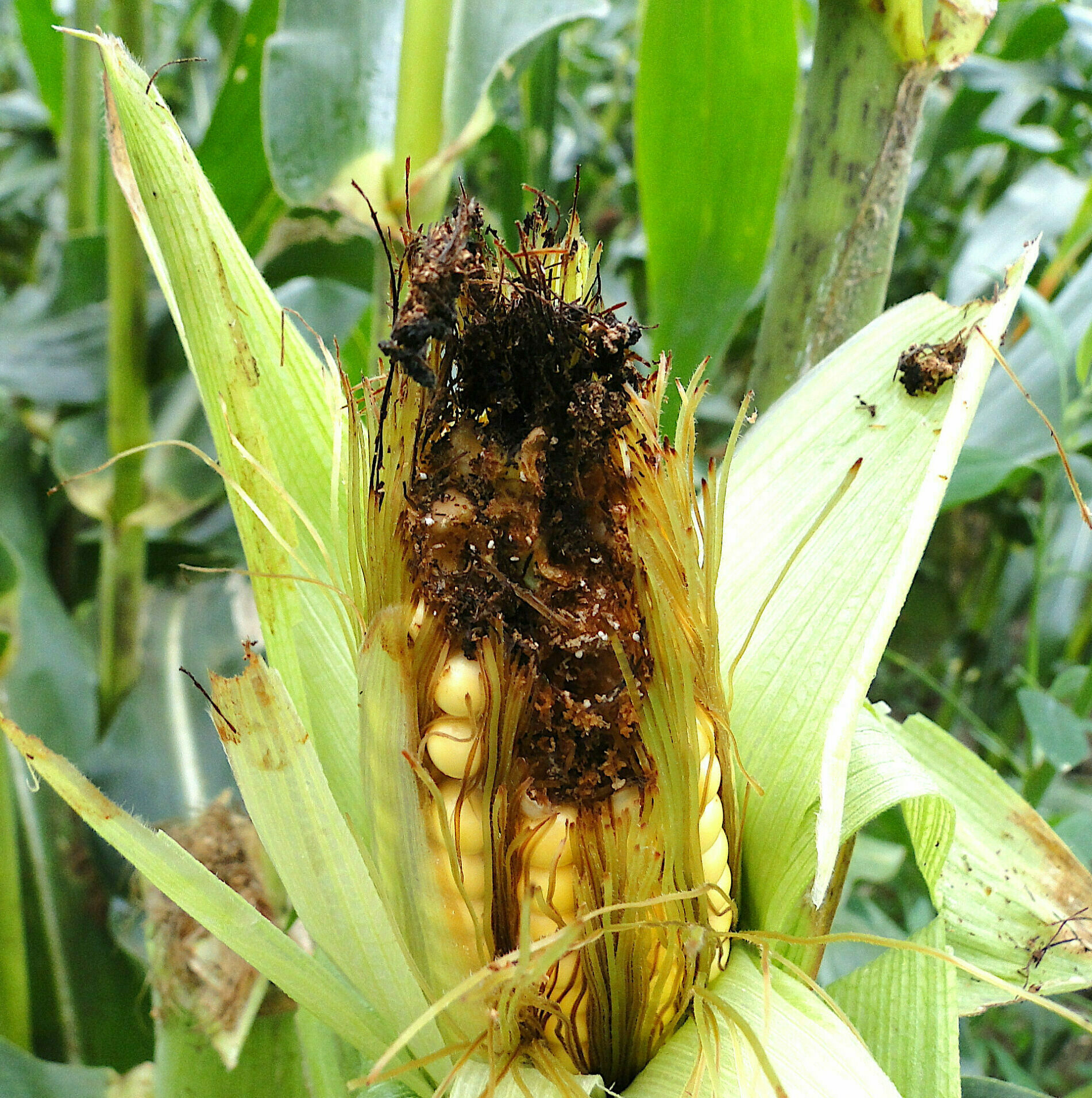 Распознавание симптомов кукурузного стеблевого мотылька.
