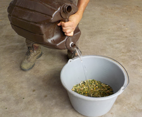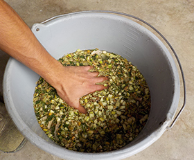 Возьмите несколько литров фуража, положите в ведро и полностью залейте водой