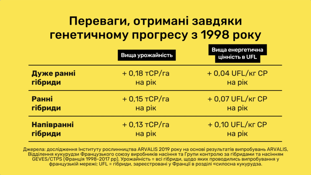 Потенціал гібрида виражається у його врожайності та енергетичній цінності (UFL).
