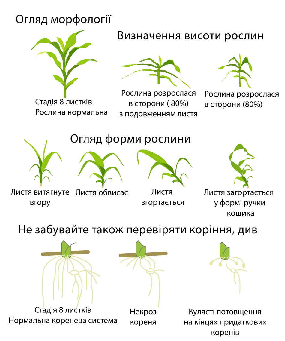 Тому, як і медичний діагноз, діагностика пошкоджень рослин на ранніх стадіях розвитку кукурудзи потребує методичного та ретельного підходу.