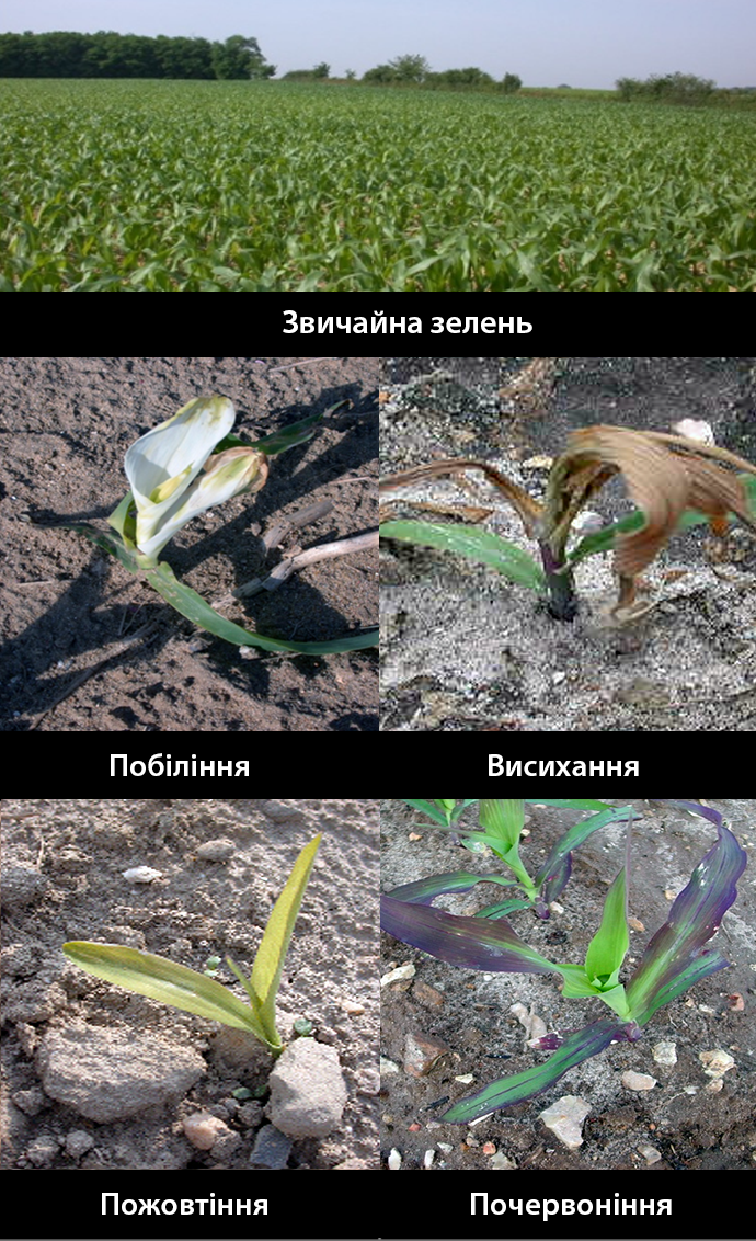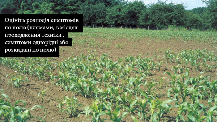 – На якій стадії виникли симптоми? Між сівбою і стадією 3-4 листків або між стадією 3-4 листків та стадією 8-10 листків? Симптоми прогресують? Ці дані дозволяють визначити причину пошкоджень .